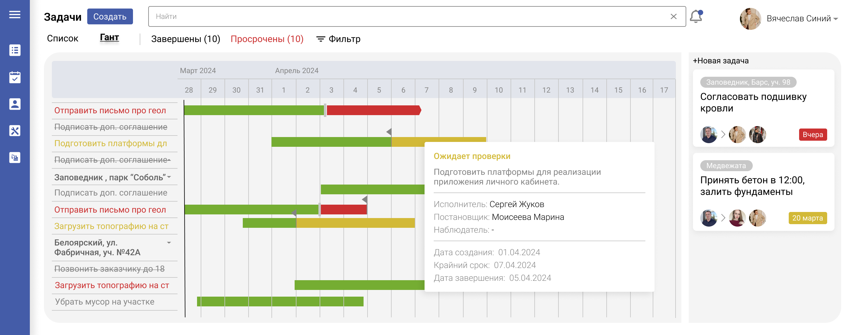 Смотрите, где вы отстаете от графика, распределяйте и корректируйте бригады.