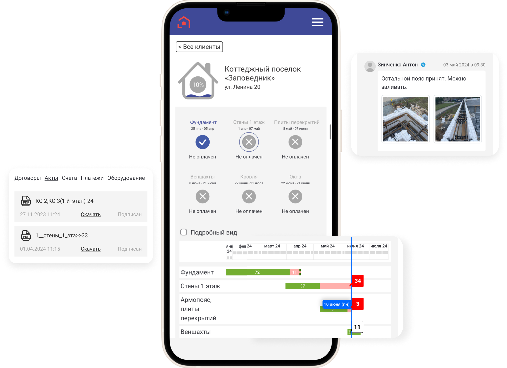 Кроме того, мы предусмотрели личный кабинет для клиентов, который позволяет им удаленно следить за строительными процессами своих домов. Это добавляет уровень прозрачности и доверия, так как клиенты могут в любое время получить актуальную информацию о ходе работ и состоянии своих домов.